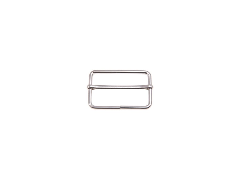 Kovový posunovač na popruhy - nikl Používá se na regulaci popruhů na taškách, kabelkách a batozích. Rozměry - vnitřní rozměry: 38 x 22 mm - tloušťka: 4 mm